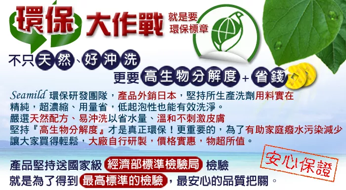 ●生物分解度高於95%且不含壬基酚,是對環境百分百友善的好商品